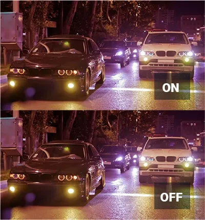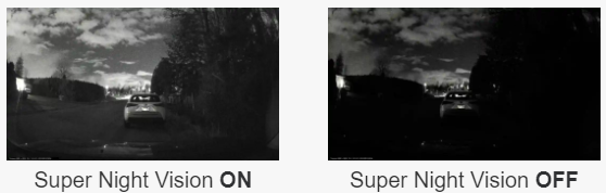 Revolutionize night time recording with enhanced video brightness and reduced image noise in low-light conditions with our advanced Super Night Vision technology. Leveraging Image Signal Processing (ISP) technology and real-time image processing, the system captures significantly greater detail at night. With the 2.0 version, enjoy the flexibility of having Super Night Vision in Continuous Mode and Parking Mode.