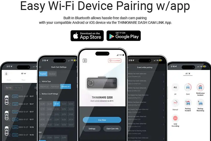 Hassle-free dash cam pairing with your compatible Android or iOS device via the THINKWARE DASH CAM LINK App. Once paired, adjust your dash cam’s settings or replay and download your latest driving videos on the go.
