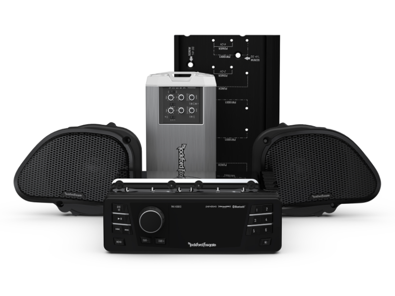 Add a high-performance 2-speaker, 400-watt audio system to your motorcycle, purpose built for select 1998-2013 Harley-Davidson® Road Glide® models. System includes a replacement digital media receiver, two 6.5” fairing speakers, a 400 watt 4-channel amplifier, and complete installation kit.