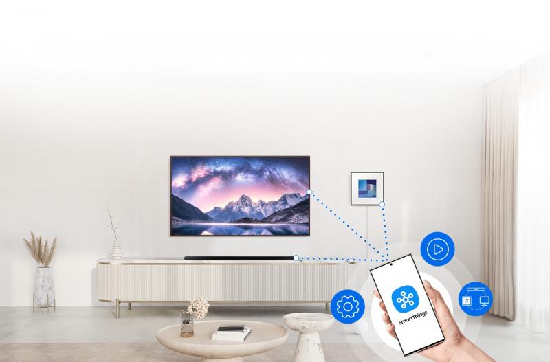 Connect your sound device to SmartThings App via Wi-Fi that allows you to control sound setting and group play on your mobile device. You can also access voice assistant and easily play your favourite music.