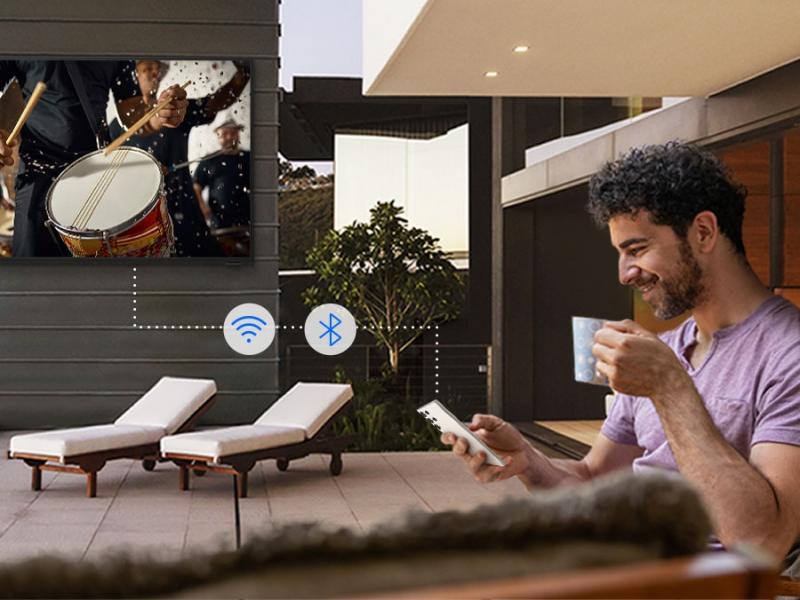 The Terrace is more than an outdoor TV — it’s also a Samsung Smart TV. Simply turn it on to access streaming content, apps, games and more. It also seamlessly connects to other devices so you can enjoy more activities.