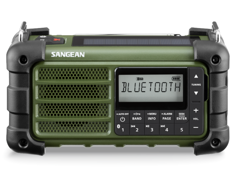 Equipped with a solar panel as well as a dynamo hand crank generator. The radio provides a memory bank with up to 40 station presets for AM / FM, Bluetooth Streaming, Auto Tuning System (ATS), 5-Mode LED flashlight including SOS settings, and many more.