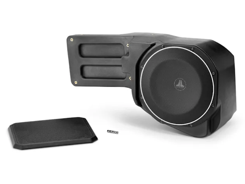 Featuring a rugged, custom-molded sealed enclosure, this Stealthbox model houses an innovative, 10-inch TW1 thin-line driver and installs behind the passenger side panel in the cargo area. The result is powerful, deep bass that’s worthy of Ford’s celebrated nameplate.