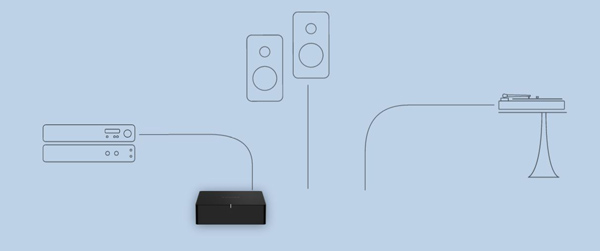 Enjoy music, podcasts, audiobooks, and internet radio with your amplified audio equipment. You can also stream vinyl, CDs, and stored audio files to Sonos speakers in other rooms of your home.