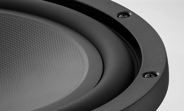 A light-weight paper cone diaphragm directly connected to the voice coil reproduces tight low end. The injected polypropylene dust cap ensures rigidity and optimizes internal damping, realizing powerful and responsive bass sound.