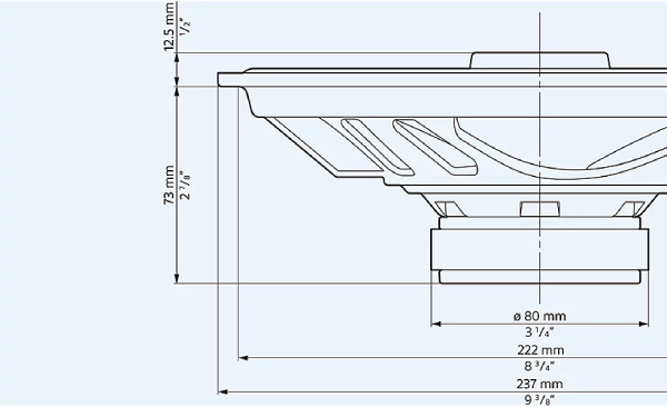 A durable polypropylene diaphragm delivers deep bass, while suppressed peaks and dips in the mid and high frequencies ensure smooth integration with the tweeter.