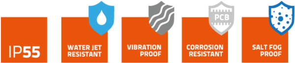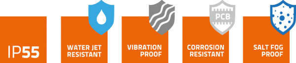 IP55 aluminum chassis for maximum protection against humidity and external agents