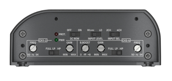 SP 4.900 offers both remote-in signal detection and DC offset sensing on the speaker inputs for automatic turn on, providing total integration with any vehicle.