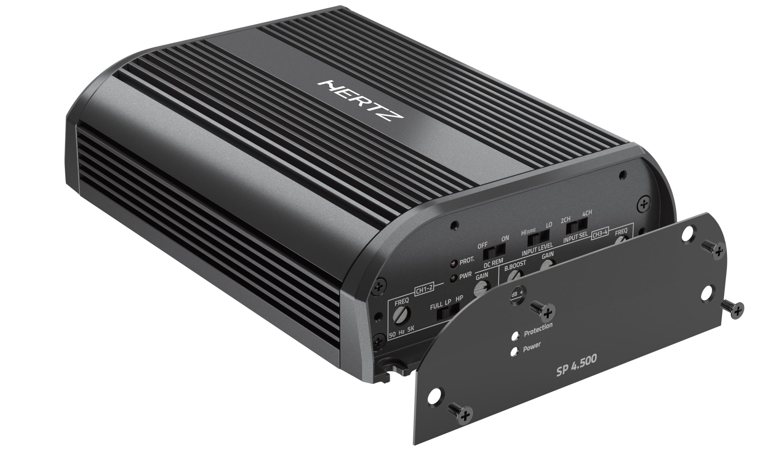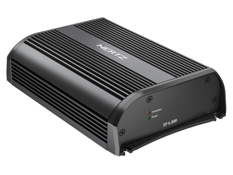 SP 4.500 is the first Hertz amplifier featuring the renewed Hertz ADC (Advanced D-Class) output stage, reaching up to 85% efficiency and delivering an impressive power rating of 90 x 4 (4Ω) W RMS or 300 W x 2 (4Ω) W RMS when bridged, with an ultra-compact size of 192.7 (7.58) x 130 (5.1) mm (in.) x 49 (1.9). Being ultra-compact with impressive power, SP 4.500 is the ideal choice for Motorcycle applications and for under-seat in sports cars and behind-seat installations in trucks.