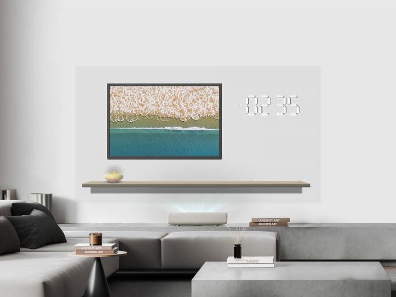 * Images are simulated and for illustration purposes only. The Graphic User Interface (GUI) specifications, which do not affect product performance, are subject to change without notice. ** Actual product may differ from image shown. Please see our product gallery. *** The laser projector can be projected on a flat white or bright monotone wall without setting up an additional screen. For a more optimized experience, using a screen dedicated to ultra short throw projector is recommended. **** The screen sizes for each projection distance may differ depending on the installation environment.