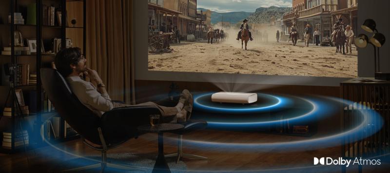 Enjoy cinematic Dolby Atmos sound with powerful 40W 2.2.2ch up-firing speakers and built-in woofers that create an expansive dome of sound, delivering a truly immersive home theater experience.
