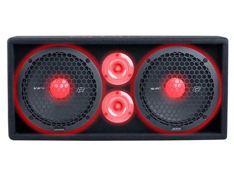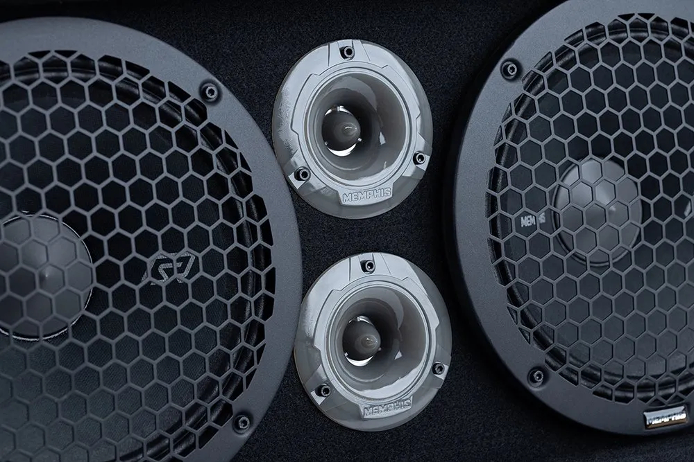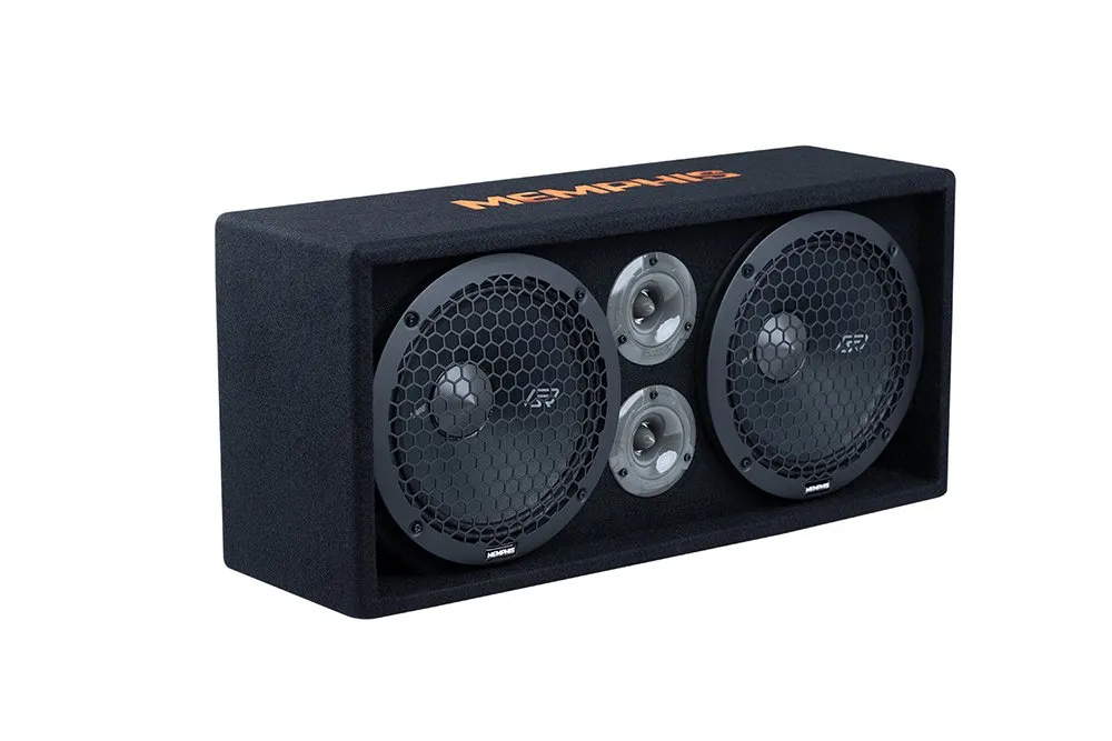 This 500/1000 Watt enclosure features Memphis Audio’sSR Pro 10” mids paired with dual SR Pro horn tweeters making it one of the loudest pro audio boxes available. The SRXPE10D4F showcases a stunning display of RGB LED lights which include a center illuminated dust cap and rear mounted ring lights on the mids and fully translucent illuminating tweeters creating an awesome lightshow. A handle is incorporated into the body of the box to allow for easy transportation in and outside of vehicles making this an awesome accessory for anyone wanting the ability to fill a space with an absurd amount of sound.