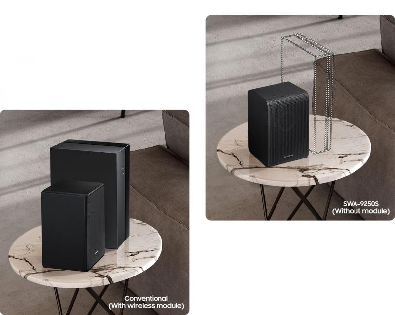 Enjoy surround sound that doesn't clutter your room. The wireless rear speaker connects to your soundbar without the need for separate modules. Just plug in the power cable and experience cinematic sound, no extra setup required.