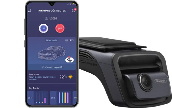 Receive impact notifications or monitor remotely what’s happening around your vehicle via your smartphone with the Thinkware CONNECTED app*. When the U3000 is connected to the internet, the dedicated Thinkware CONNECTED app gives you access to the features below.
