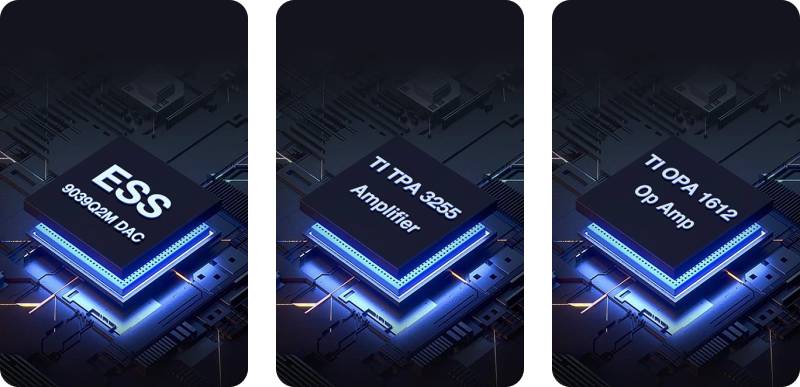 Premium Audio Components: ESS 9039Q2M high-performance DAC, Dual TI TPA3255 Amps, TI OPA1612 op-amps for ultra-low distortion and rich, detailed sound.
