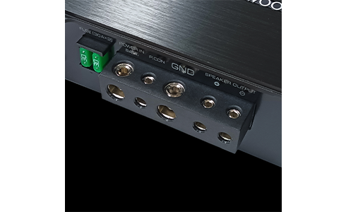 | Key Features | CTA-2006-D Compliant Class D 2 Ohms Load Capability One-Sided Connection Speaker Level Input Signal Sensing Turn-on Remote Level Control ※Input Sensitivity for Sub Terminal Concealing Cover(Resin Mold) Power MOS-FET Switching Power Supply Extruded Aluminum Heat Sink Design |