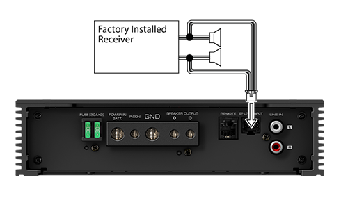 Speaker Level Input Harness is included to connect to speaker wires from factory installed receivers.